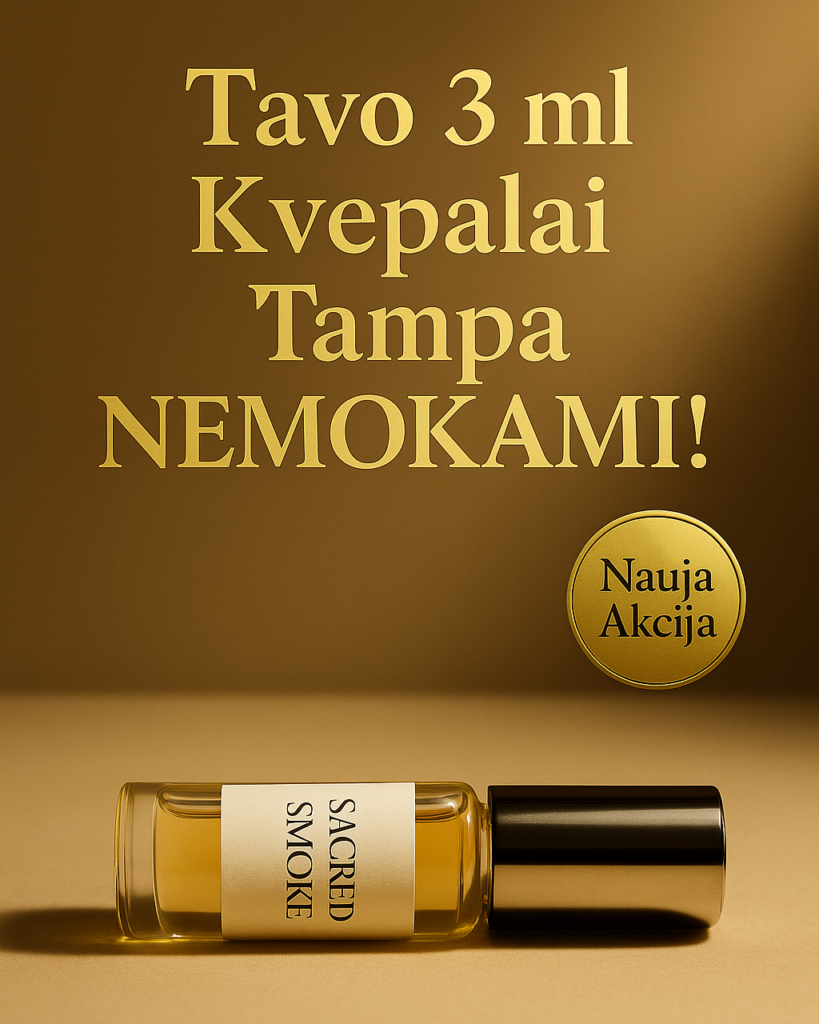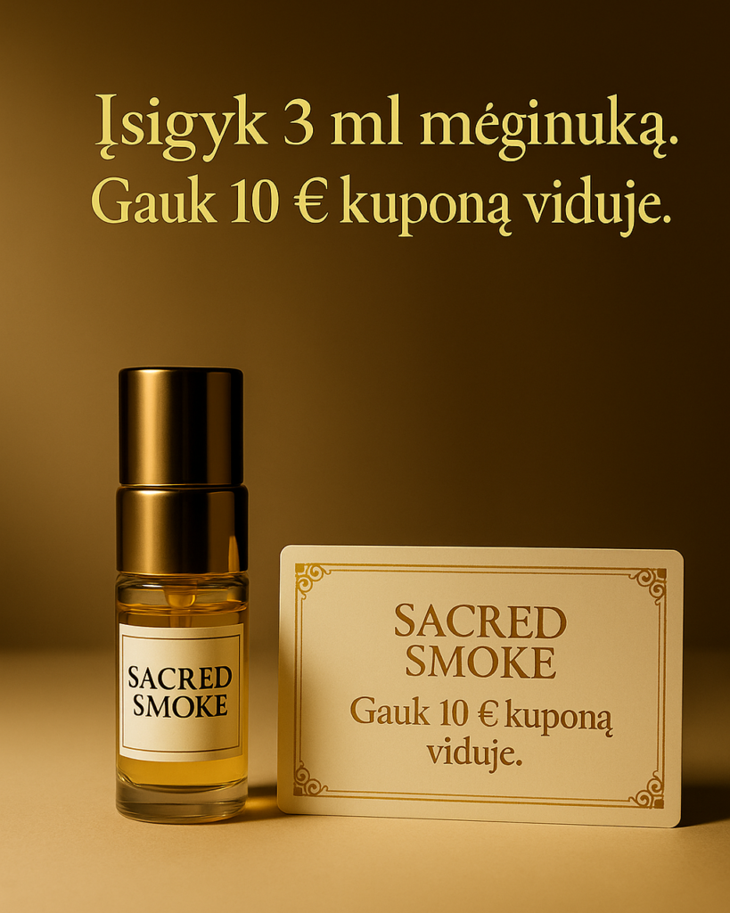 Užsisakęs bet kurį 3 ml mėginuką, siuntoje rasi atspausdintą 10 € nuolaidos kuponą. Jį galėsi panaudoti įsigydamas 50 ml pilno dydžio kvepalus — taigi mėginukas tau kainuos 0 €.